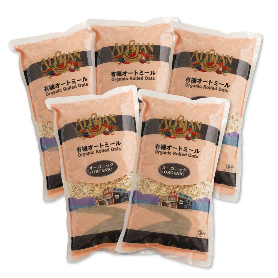 【送料無料】ALISHAN アリサン オーガニック 有機オートミール500g 5パック 約50食 押し麦 オーツ麦 レンジ 簡単 スイーツ作り 無添加【日時指定 代引き不可】