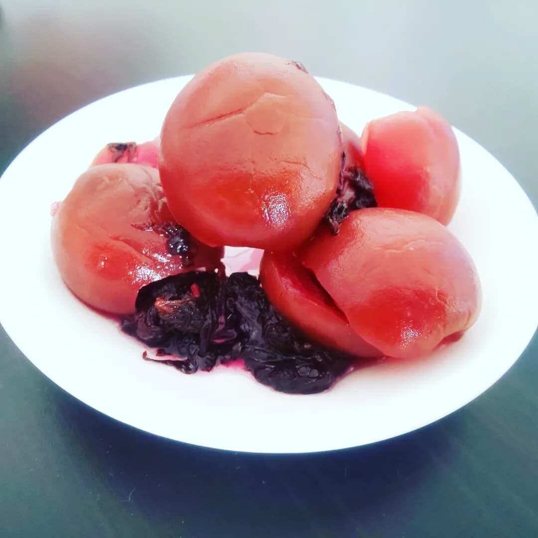 赤い色は紫蘇だけの色です。天然色素のため、時間がたつと色があせます