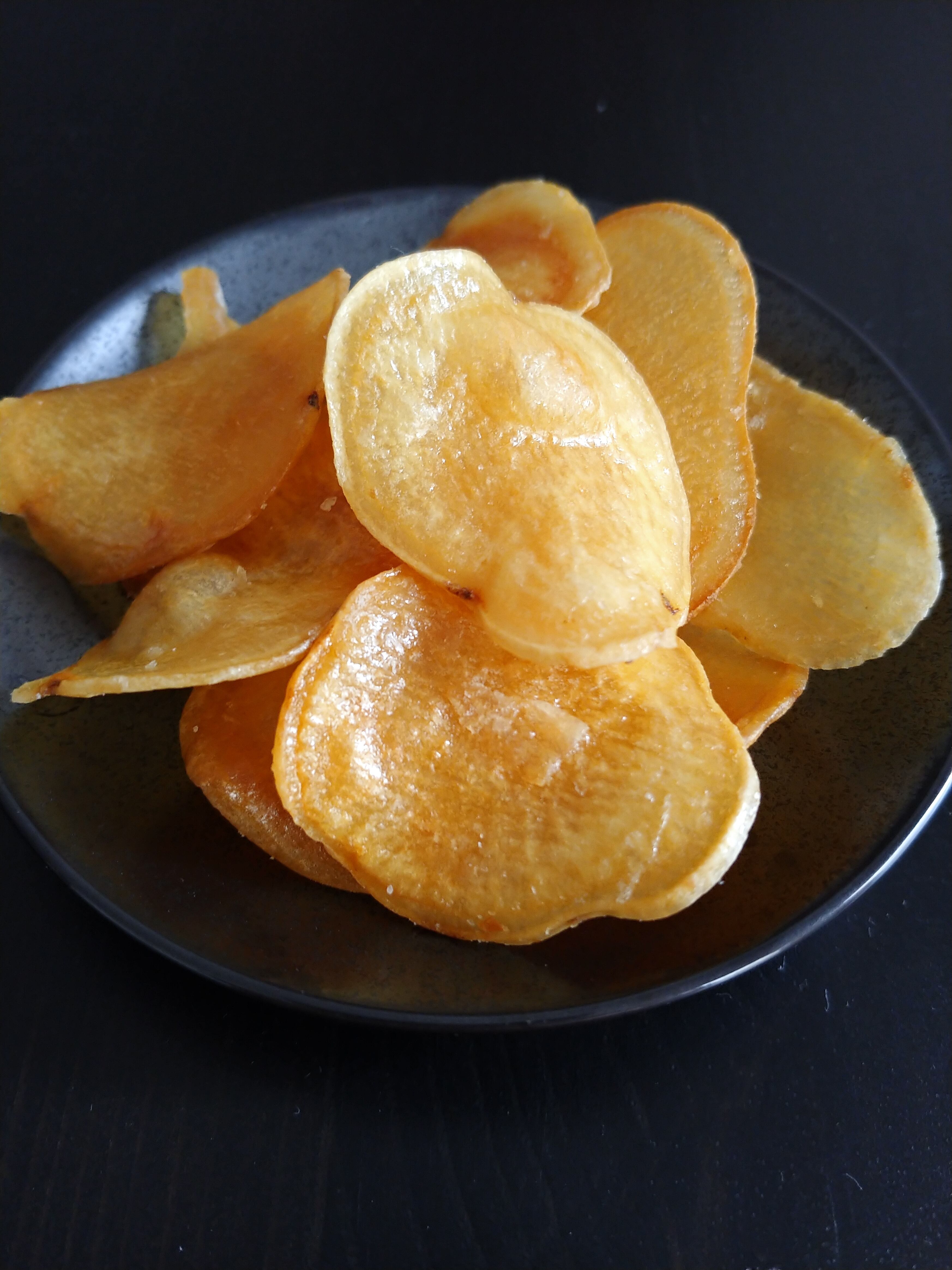 お芋をスライスして絶妙な加減でサクサクに揚げた、芋チップスです。